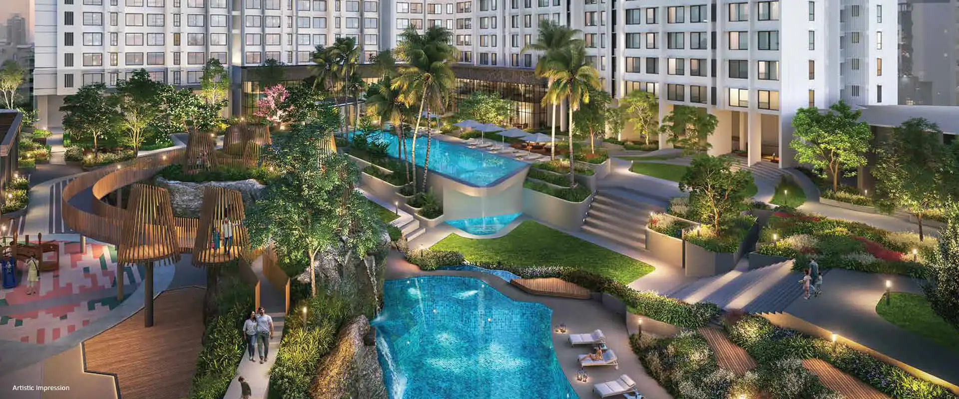 Launching soon on a 6-acre plot, Rivali Park Borivali Haven offers six towers with 2 BHK & 3 BHK premium residences. Each tower features 2 basements, a ground floor, 4 podiums, and 35 residential floors. Located just 100m from the Western Express Highway and 200m from the Metro, it ensures superb connectivity.