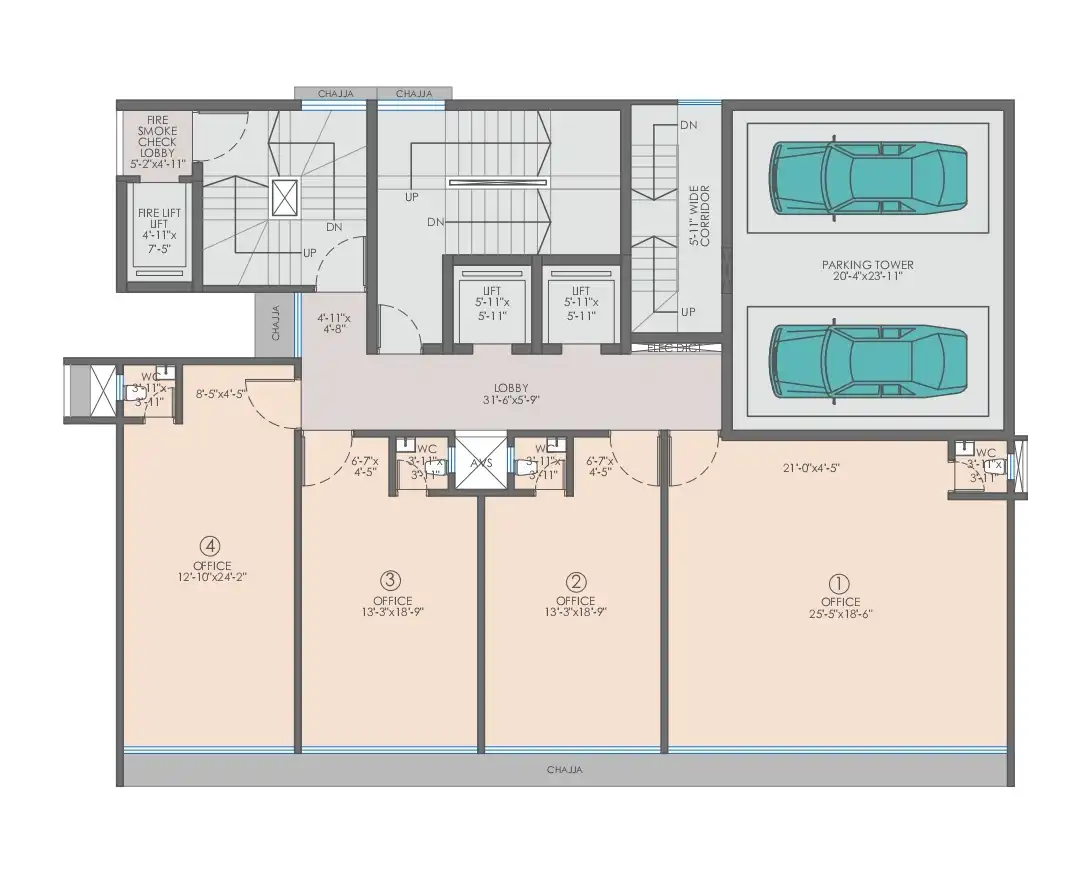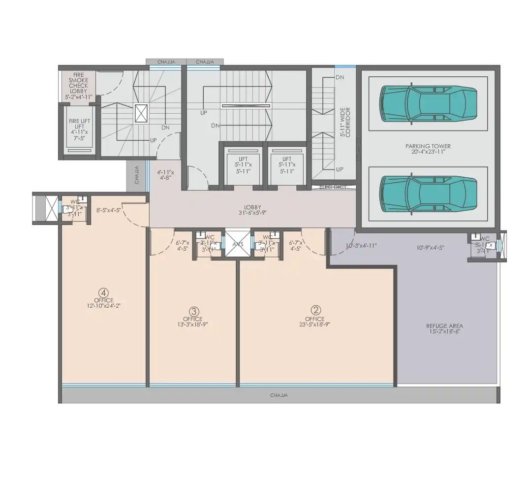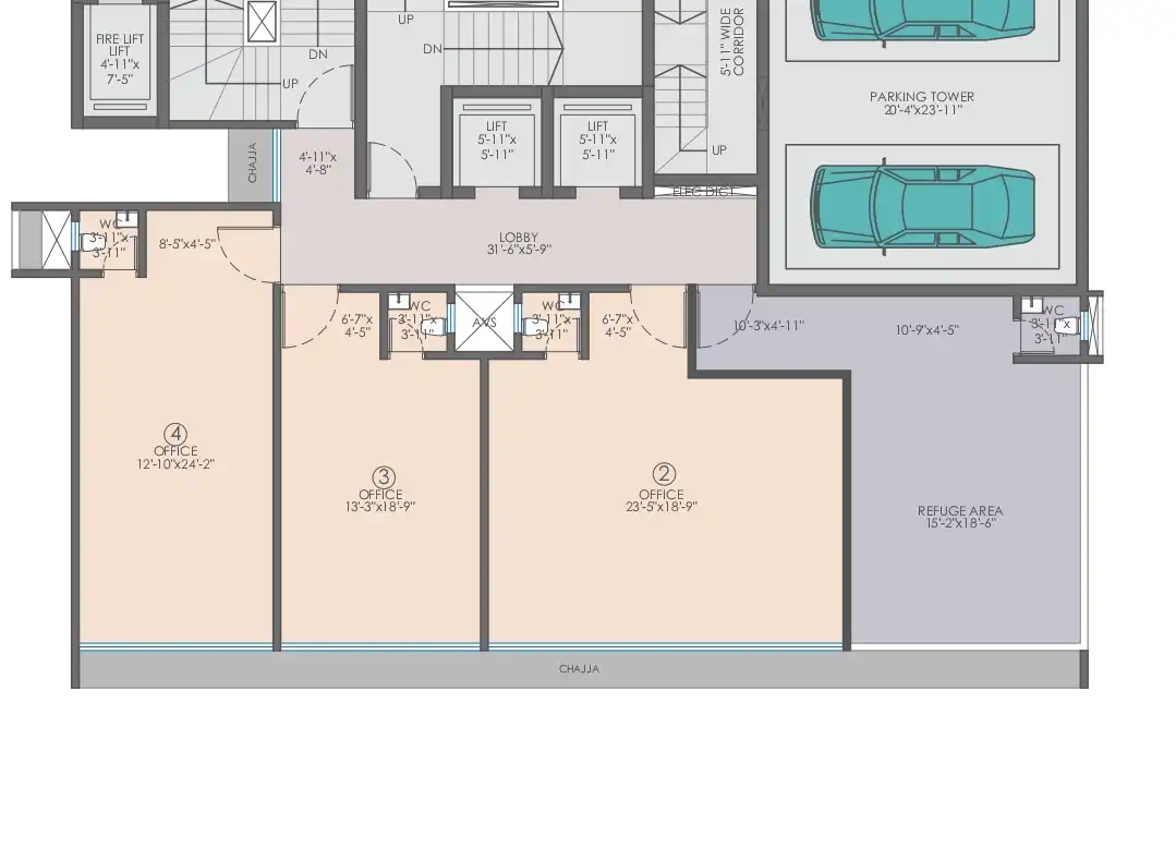 From its grand designer entrance lobby to high-speed elevators that provide seamless vertical transit, every element is designed to elevate the business experience. Each office space is thoughtfully planned to maximize functionality, flexibility, and aesthetic appeal, creating a workspace that supports productivity and growth.