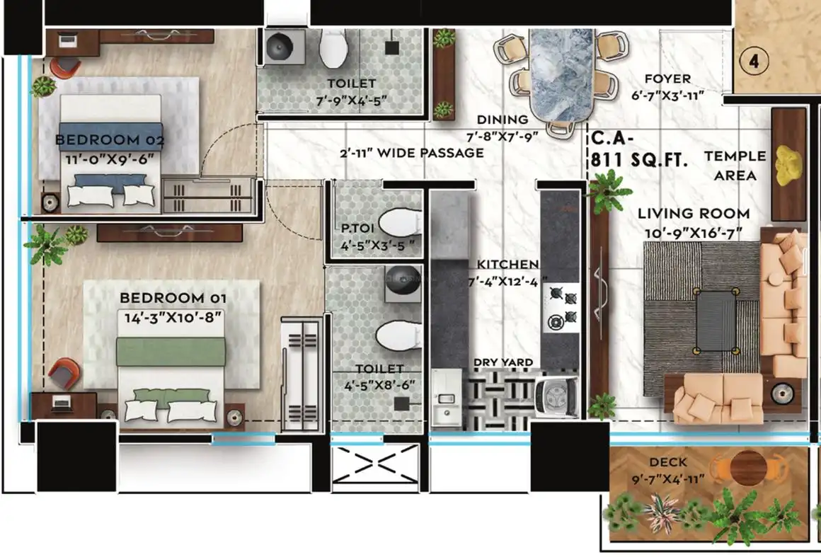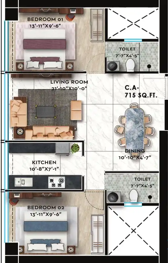 Carpet: 781 – 1102 Sq.Ft